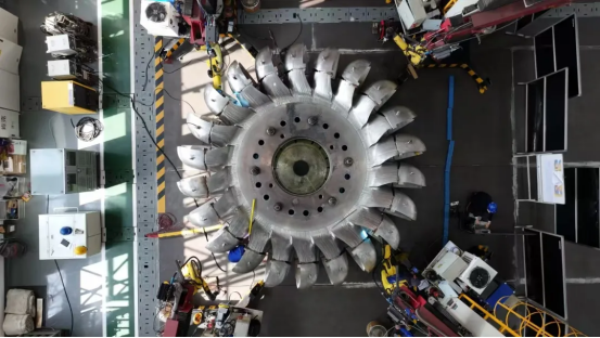 近年來,針對(duì)大型沖擊式轉(zhuǎn)輪研制,東方電機(jī)開發(fā)了智能化增材制造(3D打?。?、自動(dòng)化數(shù)控加工、機(jī)器人焊接、機(jī)器人打磨、機(jī)器人三維掃描等技術(shù)。本次通過驗(yàn)證的轉(zhuǎn)輪直徑6.2米,整體重量達(dá)到90噸,95%以上制造過程實(shí)現(xiàn)了數(shù)字化、智能化。