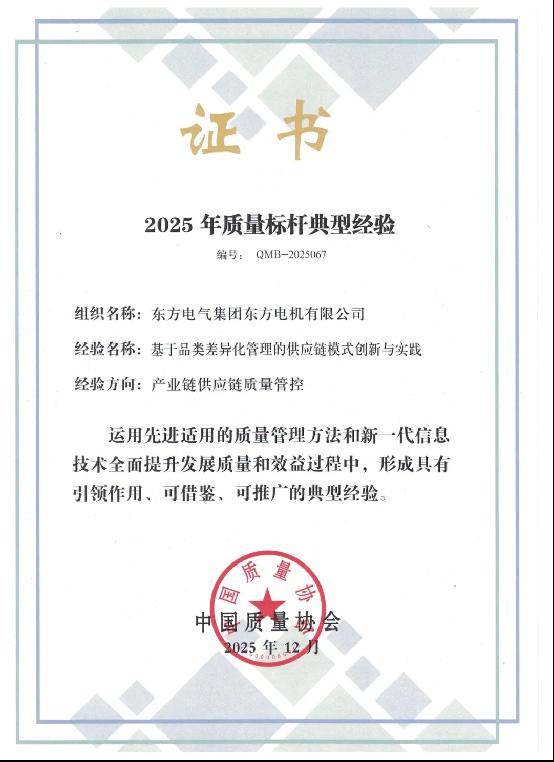 近日,中國質量協會年會暨第三屆追求卓越大會順利舉行,東方電氣集團再添質量領域榮譽,獲評中國質量協會2025年全國質量標桿2項,質量相關獎項12項,彰顯硬核品質實力。