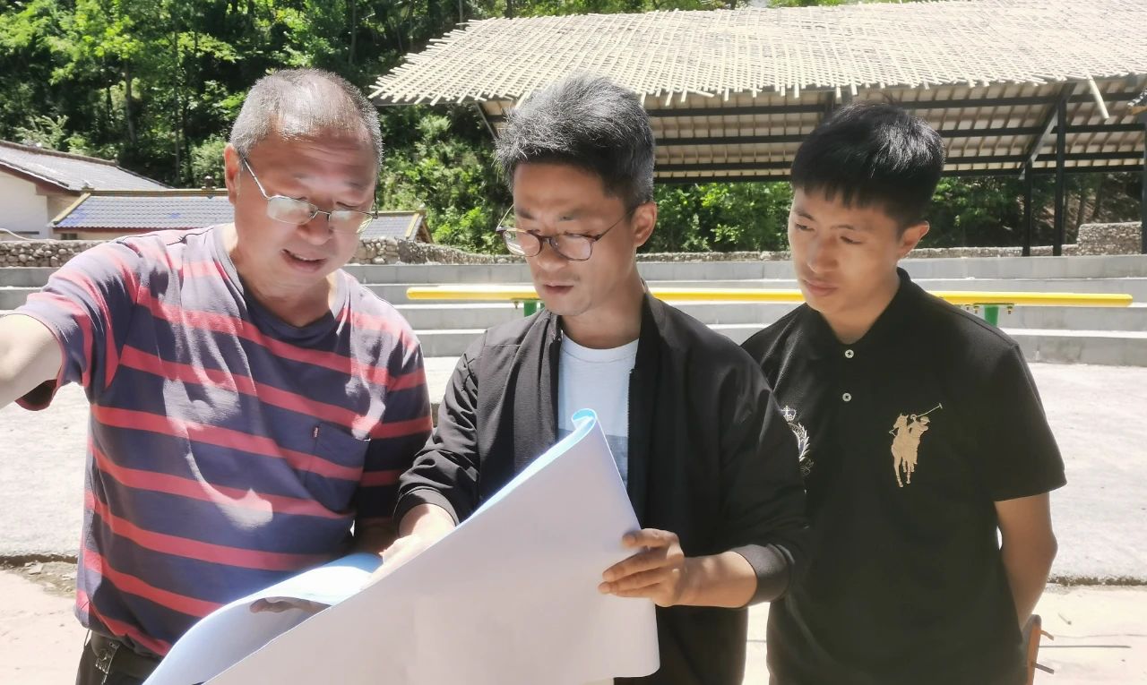 東方電氣集團派駐昭覺縣特布洛村駐村第一書記肖飛與幫扶工作小組隊員一起研究村容村貌升級改造